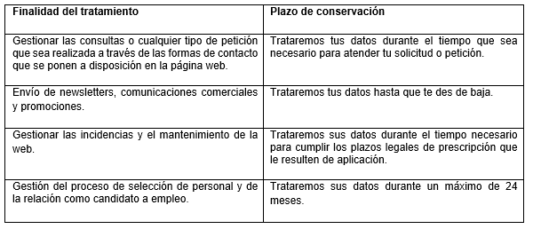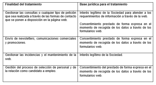 cumplir las finalidades indicadas en la presente Política de Privacidad, es